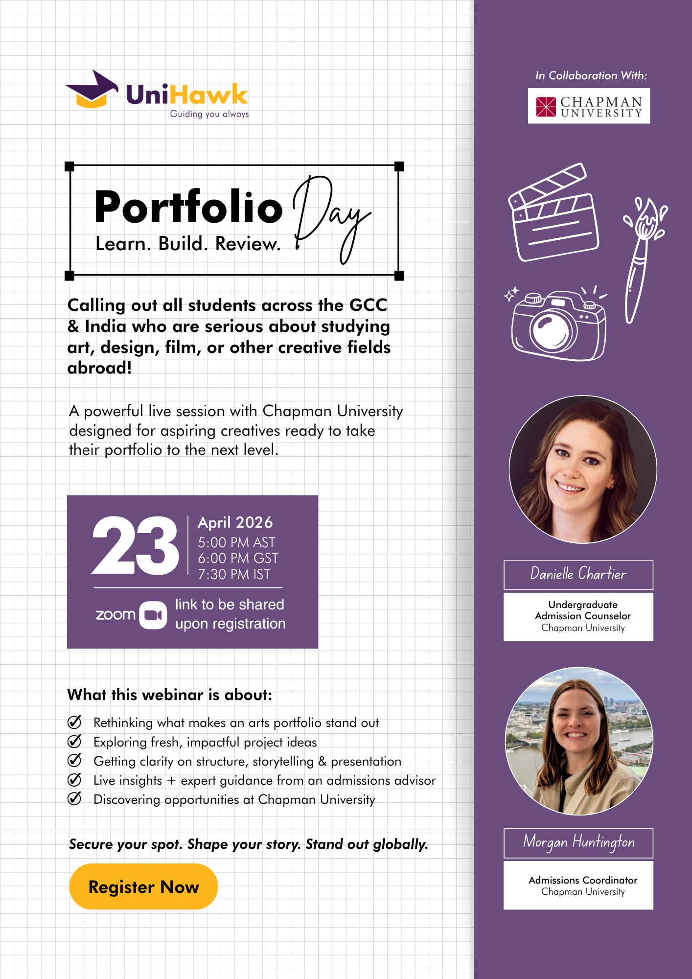 Thank you for registering for Portfolio Day — Learn. Build. Review.. A confirmation email has been sent to your registered email address. We look forward to welcoming you to the event!